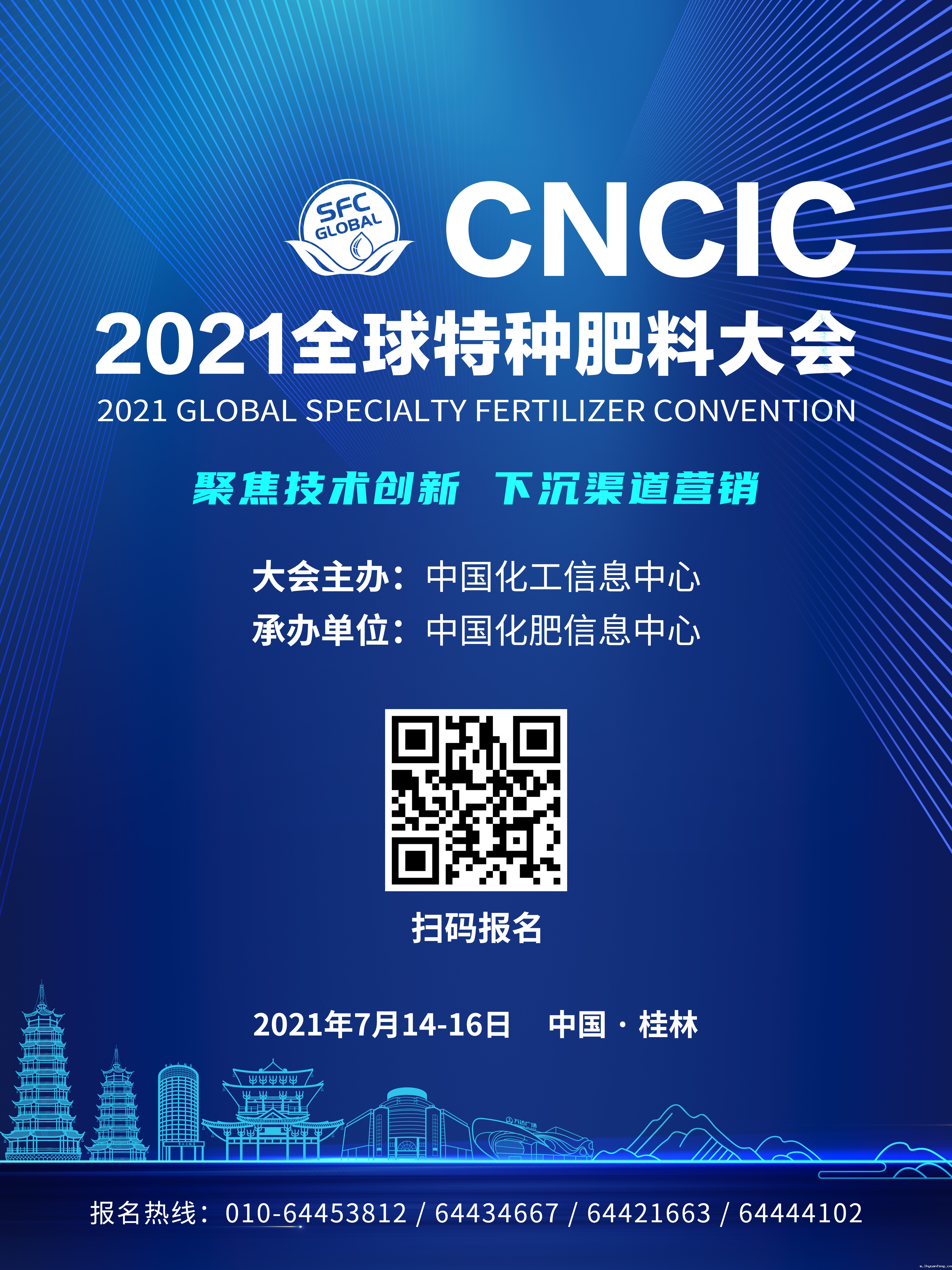 中国化工信息中心定于2021年7月15-16日(14日下午报到)在广西桂林召开2021年全球特种肥料大会(SFC Global 2021)。本次大会包括四个平行主题会议及展览,即第六届全球特种肥料热点峰会、第十二届中国国际水溶性肥料会议与展览、第十四届国际缓/控释肥产业发展高层论坛以及首届西南经作可持续种植与发展研讨会。今年的会议将延续2020年泰安会议渠道下沉的特点,继续深化终端市场、提升农化服务。重点关注“技术创新、品质升级、应用落地、营销推广”,目的在于提升全球特种肥料的技术创新水平,分享研发成果,交流推广应用经验,促进全球贸易,推动创新与发展。